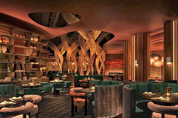 Walters was presented with a distinctive and ambitious undertaking. We were tasked with producing an 18-foot sculpture for the Komodo restaurant, located in the opulent Fontainebleau Hotel in Las Vegas. We commenced the creative process, first exploring various prototype mockups to determine the optimal design and weaving patterns. Our material of choice was natural abaca rope, chosen for its durability and rustic yet elegant aesthetic. Our artisans wove the rope, following a unique pattern developed specifically for this project. The outcome was a breathtaking spectacle - the LED lights softly illuminating the intricate abaca rope, casting a warm and inviting ambiance throughout the restaurant. The success of this bespoke project has solidified Walters' standing as a preeminent furniture design and manufacturing company for the hospitality industry, and has opened doors for future unique and challenging opportunities.